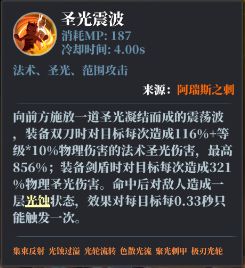 造成的是物攻856%的法术圣光伤害,也就是说,虽然属于法术技能,但是技能本身的基础伤害并不会受到法术强度的加成;