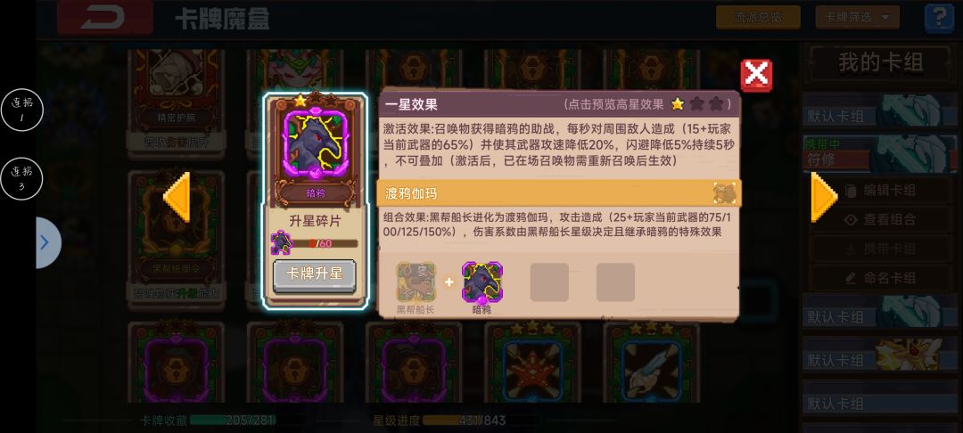 有了这一张暗鸦我们就拥有了输出能力,其他卡其实无所谓了,只需要带加强保命的卡就行。(比如地图和圣光系的)