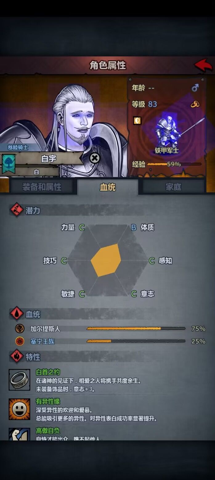 苗子上我们选择最好是最基础有着力量和体质双B的苗子,这样可以保证自身肉度的前提下仍有进一步精通的可能,更低也可以,只是有负重不足的可能性,需要调整小技能