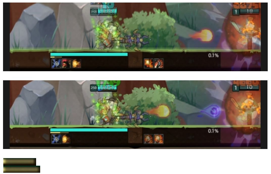 二:分别对0回复和7.9%回复属性下,从火球暴击回蓝开始截图,经过4秒回蓝后结束再截图,共计四张图片