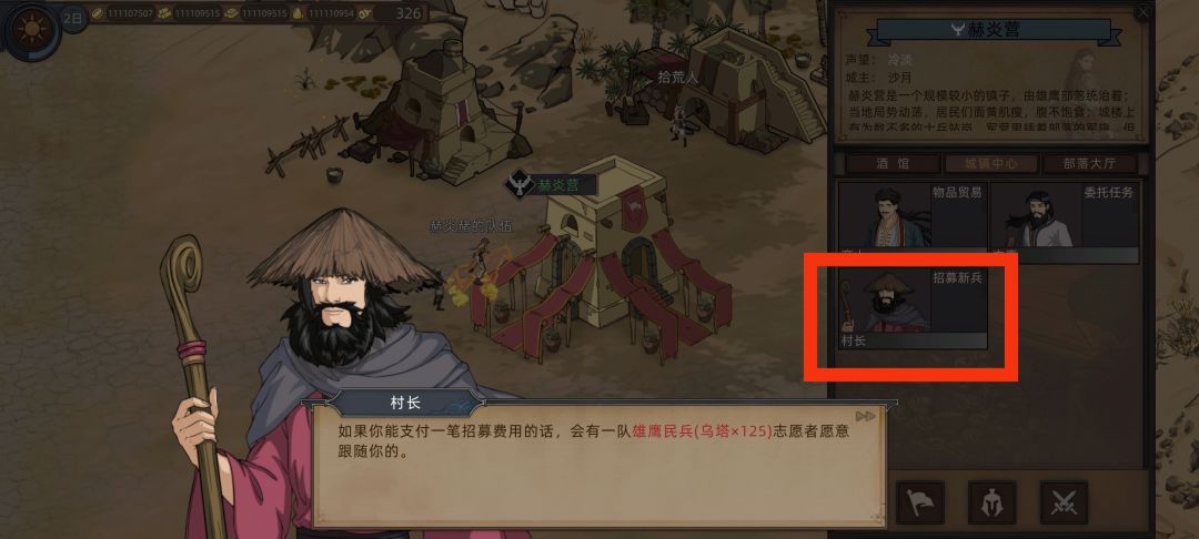 1、所有隶属部落的小城市都有一个村长,你可以找他招募这个部落的兵种,这里招募的兵种都是满编