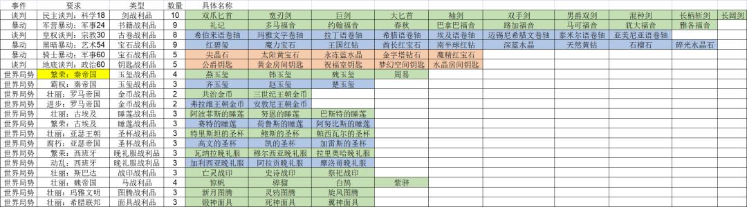 4.1、宝石战利品,游戏内【暴动】事件,242~269年,黑暗暴动,需要艺术54或【秦始皇】,获得橙色帝国战利品。