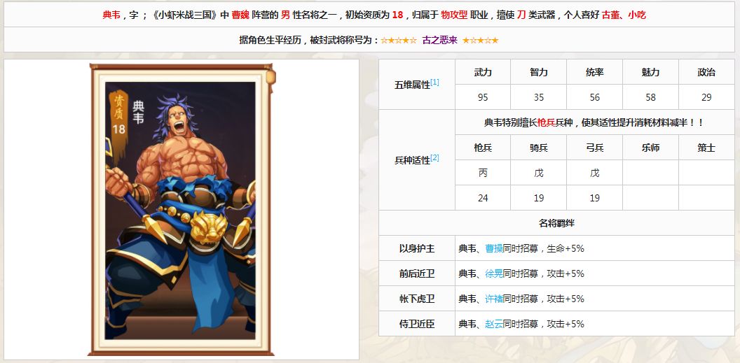 那么鉴于典韦这个武将而言,