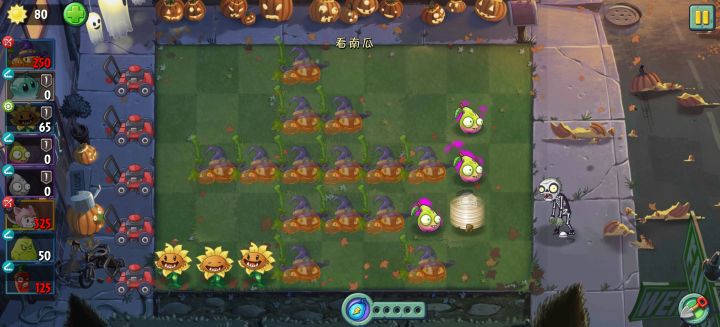 记得记得过关条件是种满南瓜巫师,所以要留一定的向日葵。失控能量都可以全部给向日葵。我就是没注意看通关条件,所以多打了好久,手都点麻了