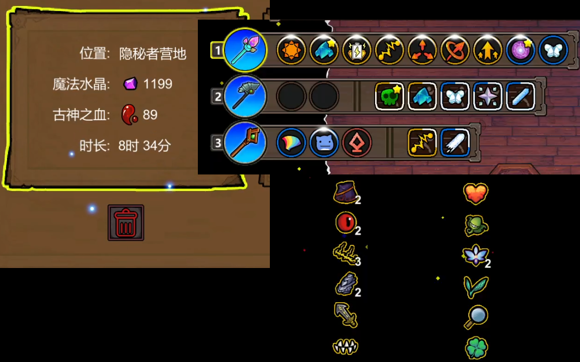 (没蓝放不了法术心真累,但是后面几个副法杖如果运气好的话,能随机到帮我们激活副法杖们的法术,也算是弥补了我主法杖经常没蓝的情况)