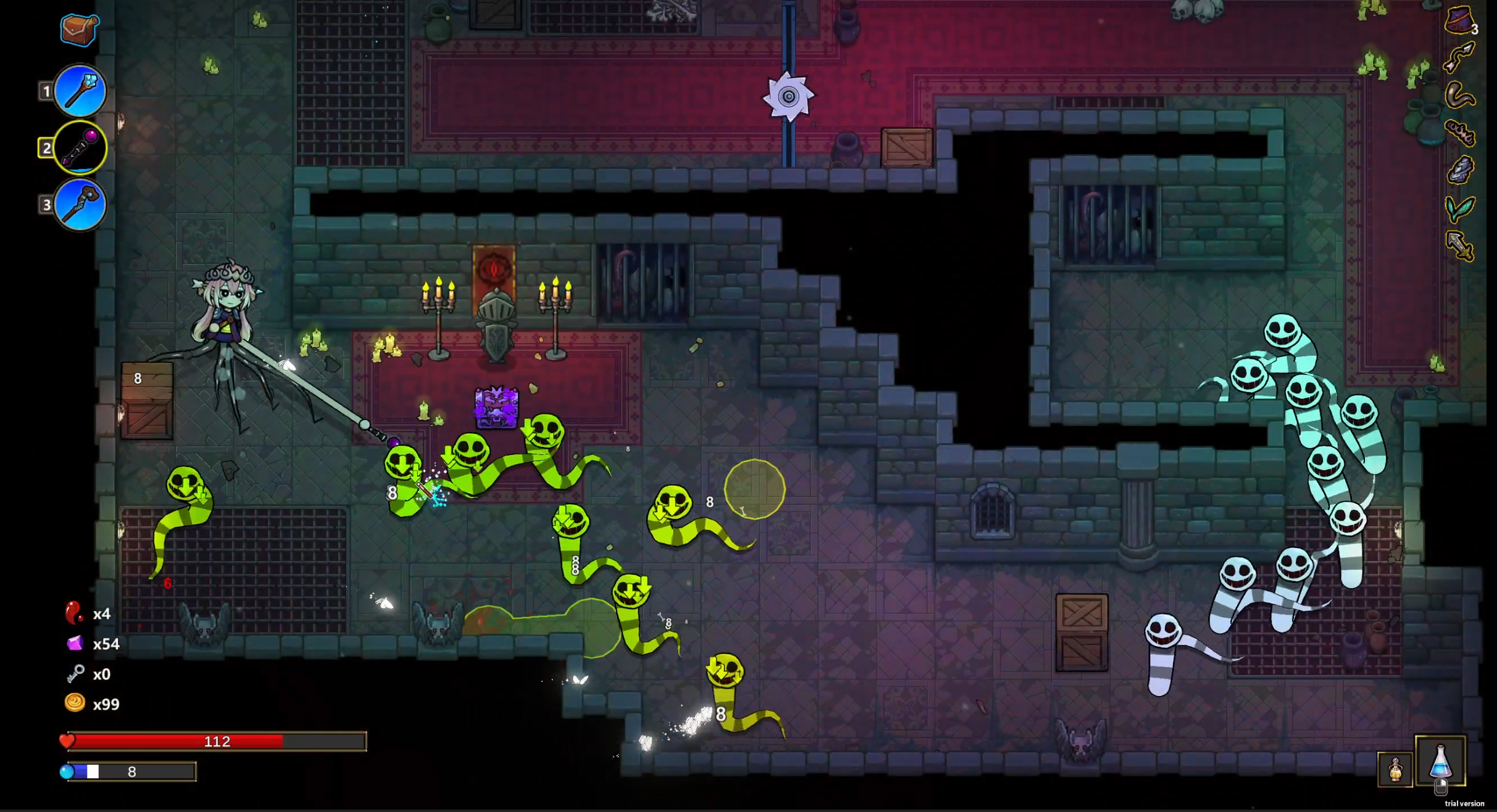 2023年11月2日发行的一款肉鸽+弹幕的游戏。游戏目前一共有3章的地图关卡,别看3章好像挺少的,我居然打了八个半小时才把这3章打完。
