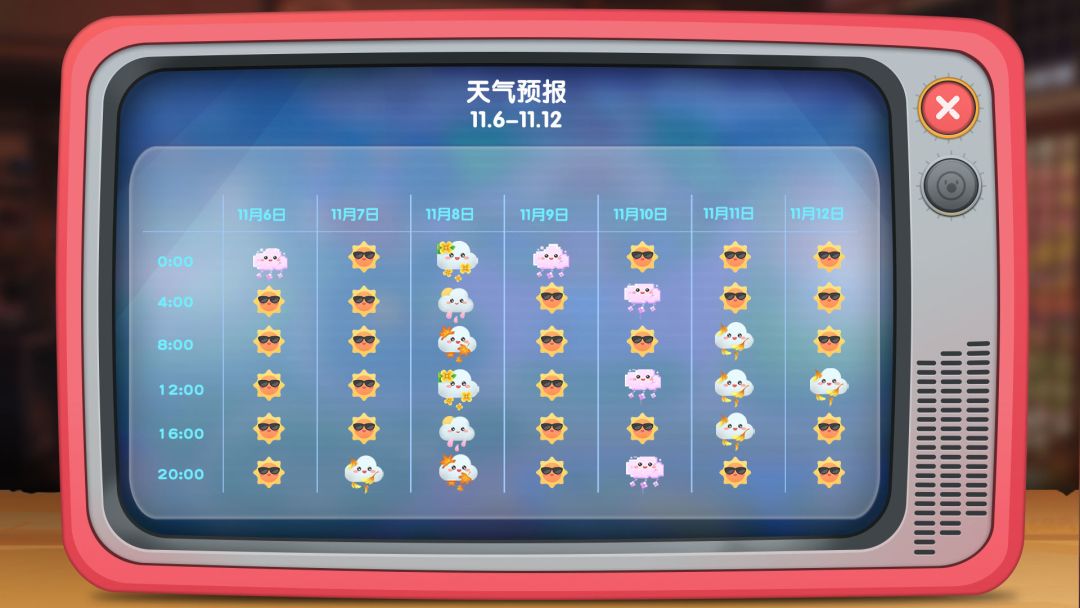 《摩尔庄园》#庄园每周天气预报#【11月6日-11月12日】