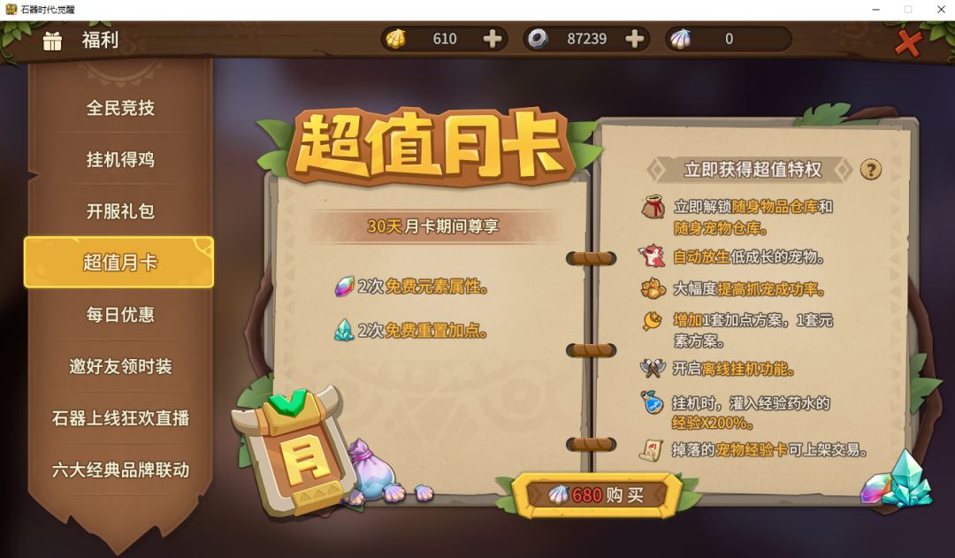只需要开通月卡特权就能提高挂机效率