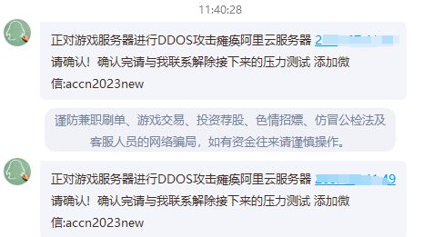 今天是戒灵传说tap首发的日子,同时也被别有用心的人盯上了,名为ACCN的黑客组织联系以压力测试的名号对我们进行勒索。目前我们也在努力修复服务器相关问题,也给各位玩家们道个歉,给各位带来不好的体验,我们会在修复完成后发放全服补偿的!