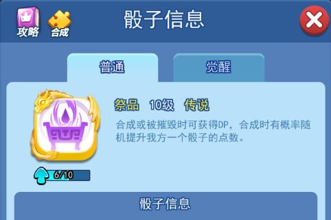 祭品也是黑洞需要佩戴的辅助骰子,他的技能是合成或则被摧毁时都会获得dp,合成时有概率随机提升一个我方骰子的点数,对于黑洞这种吞噬来说,祭品也可以提供层数也可以提供dp,可以说十分适配了。