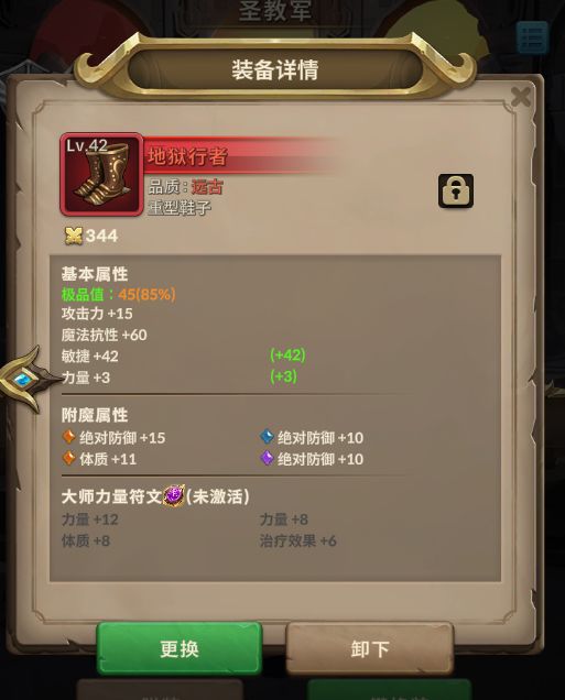由于鞋子上没有绝对防御,按照上面的办法做出来的鞋子大概率只会有1-2条绝对防御,这个时候就需要我们继续用同样的办法尝试了,再把新得到的鞋子和两外两个全部都是绝对防御的装备进行溶炼,一般来说只要运气不差到离谱,都能获得一个带有3-4条绝对防御的鞋子。当然,翻车做出一个只有两个绝对防御的蓝色盔甲这种事也是有可能发生的,笔者的脸就比较黑,做出了一个带有两个绝对防御的头盔,一下子白给。为了避免这种情况,最好拉大装备之间的等级差距,这样虽然最后做出来的装备等级可能较低,但过程是稳的,不会突然翻车,浪费一大堆资源。(富贵险中求,对自己有自信的朋友可以不顾概率大胆尝试,如果能做出一个70-90级的带有四个相同属性的装备,在拍卖行一定能卖一大笔钱)