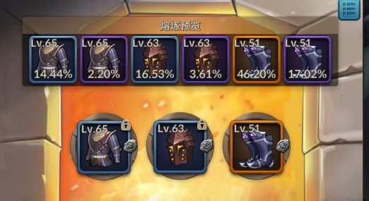 熔炉的机制是,投入三个装备,最后保留下一个装备,保留的装备会随机继承三个装备的附魔属性、强化属性和符文,并生成全新的基础属性,另外,这个装备的品质会发生改变。