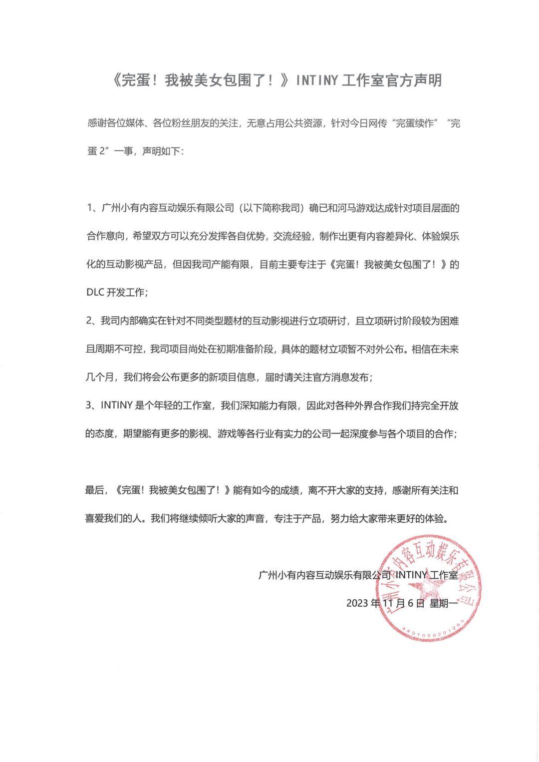 《完蛋!我被美女包围了!》INTINY工作室官方声明