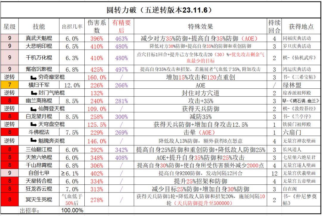 更新了无千机棍精要情况下两个心法的技能组: