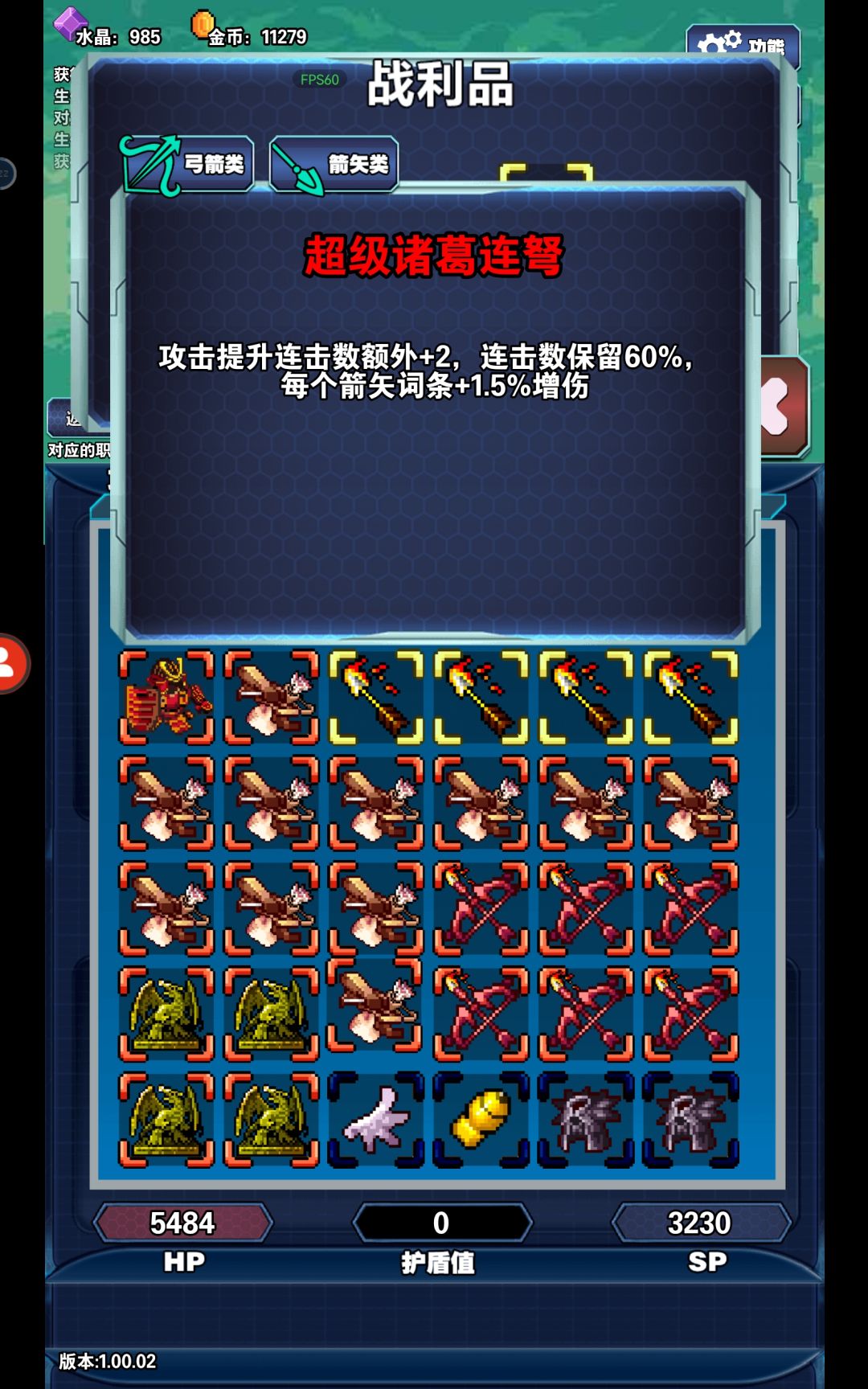因为我中途退出去过,所以叠的连击数清零了(玩这个玩法务必不要在千层boss的前几层退出,否则有可能翻车),不然恐怕能一击秒boss。等到9900层或者更早一些的位置,如果还没堆满连击,可以适当移除一些超级诸葛连弩,增加弓和箭来提升输出。至于如何配比弓箭数量,谁爱算谁算吧,我摆辣!