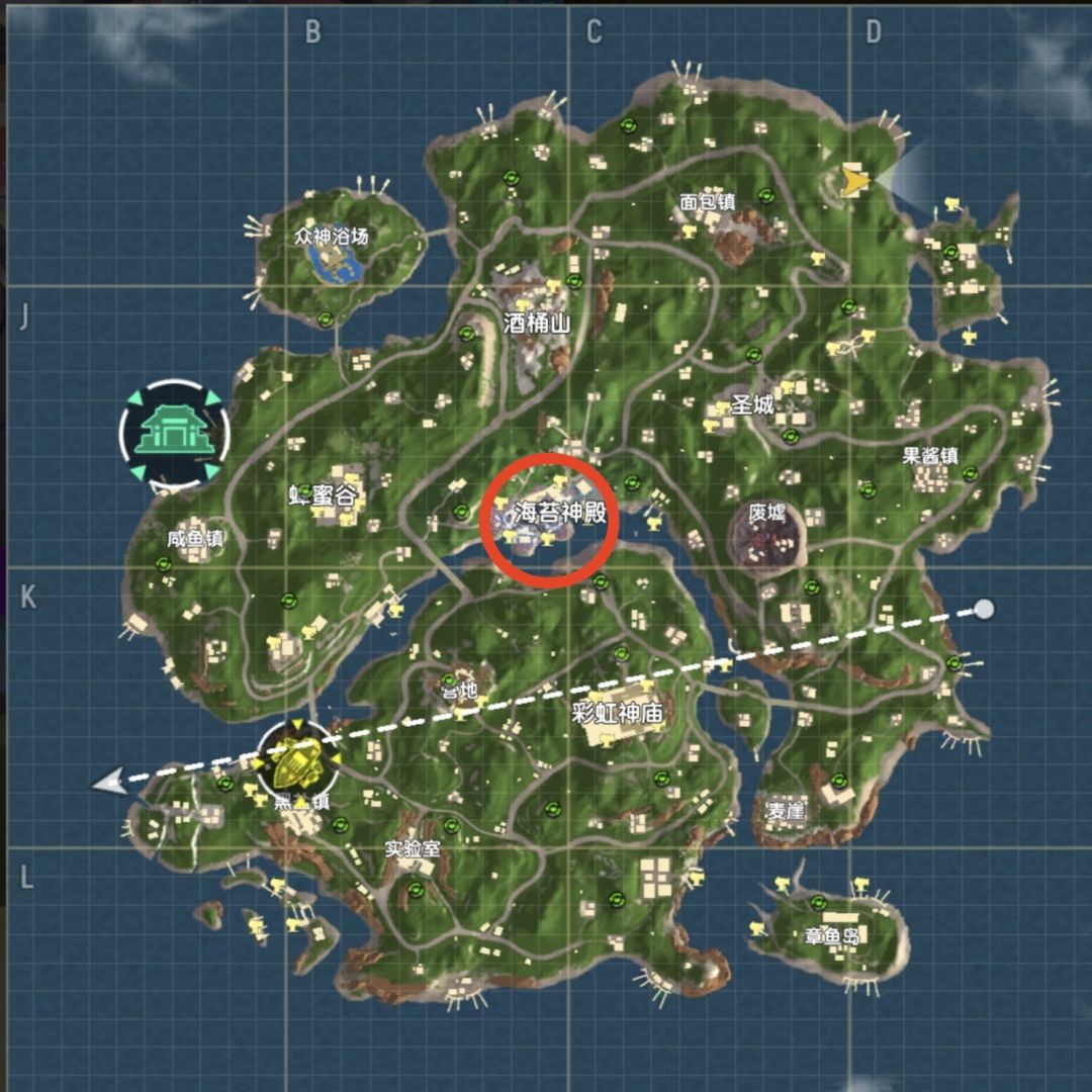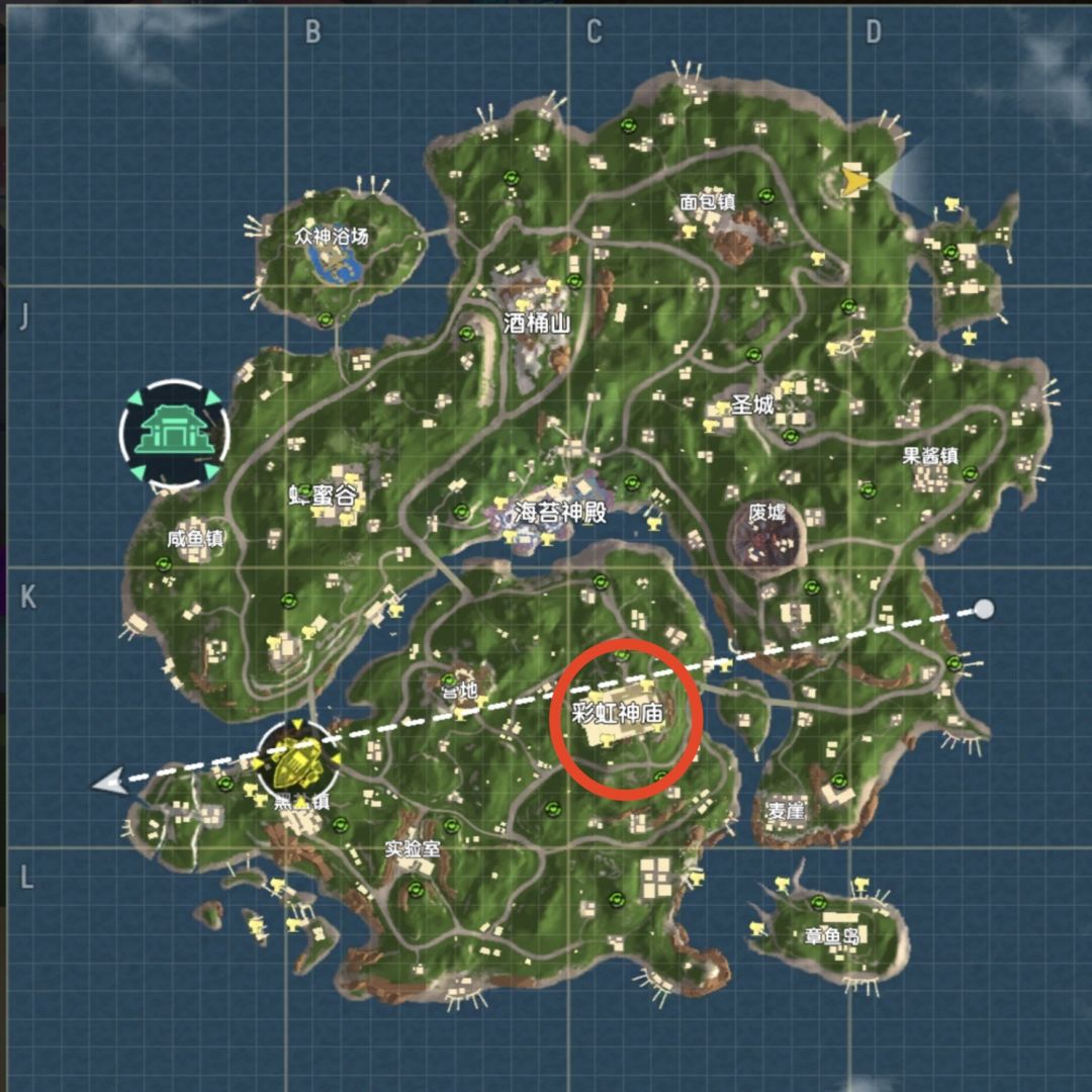 1、观察航线 发现彩虹神庙在跳伞范围内 直接前往彩虹神庙~