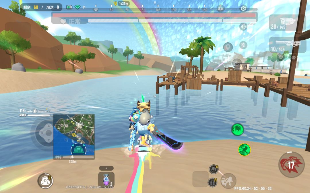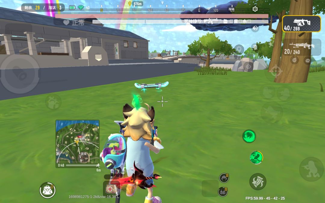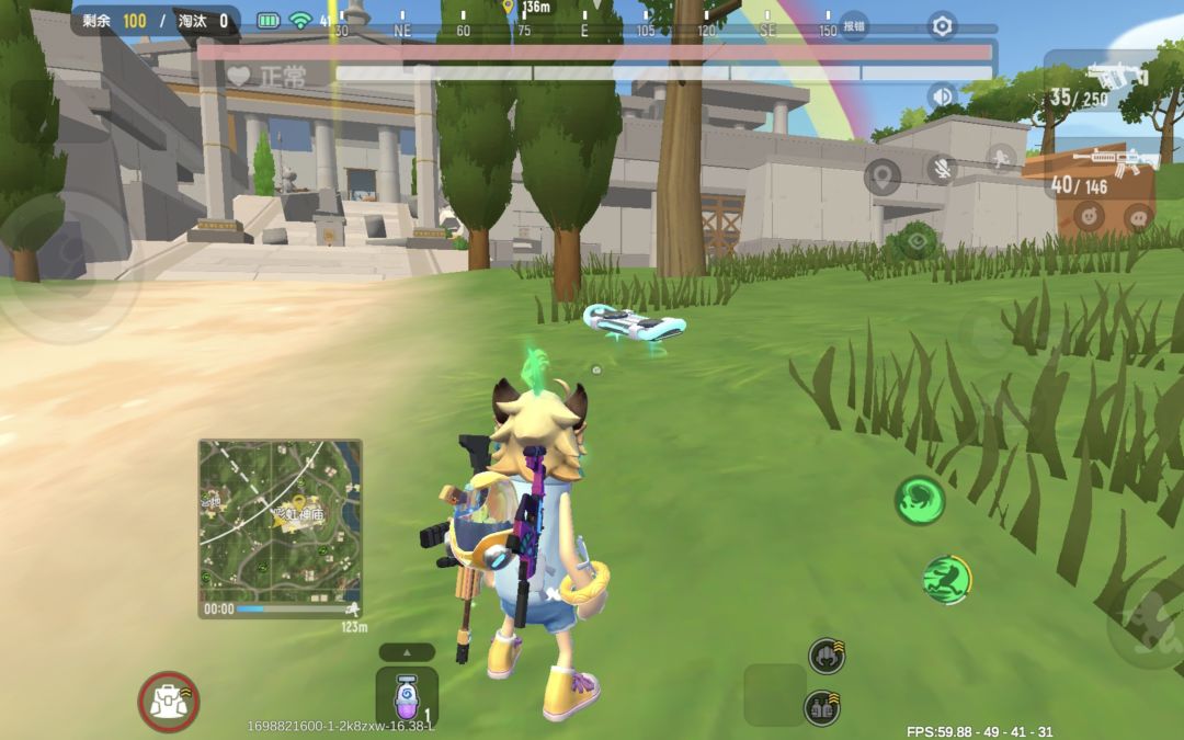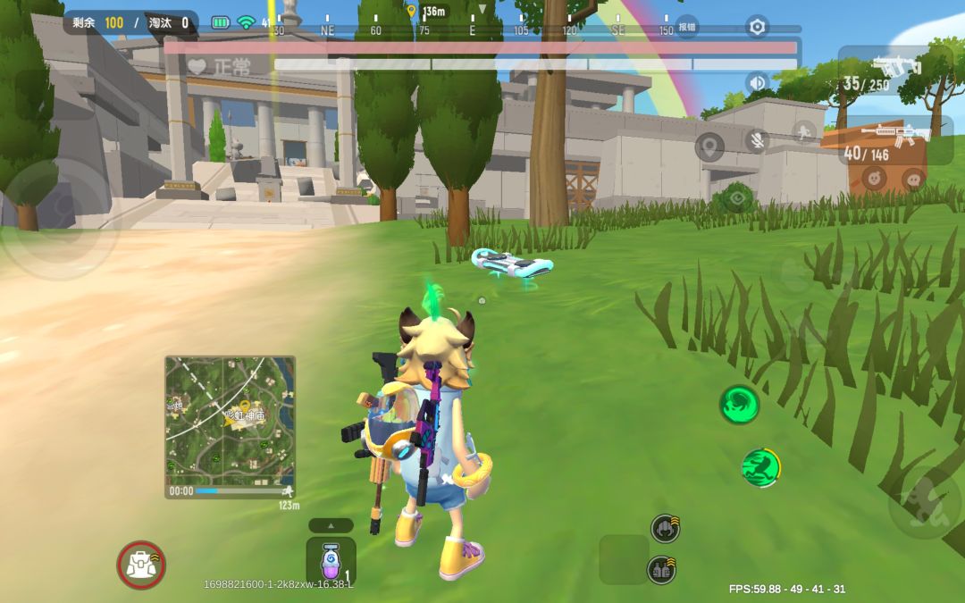 2、如果有人一起跳彩虹神庙 对自己实力有自信的可以先解决掉敌人 觉得自己胜算不大就直接用滑板跑路 去其他物资点搜索 这并不影响我们后面的计划