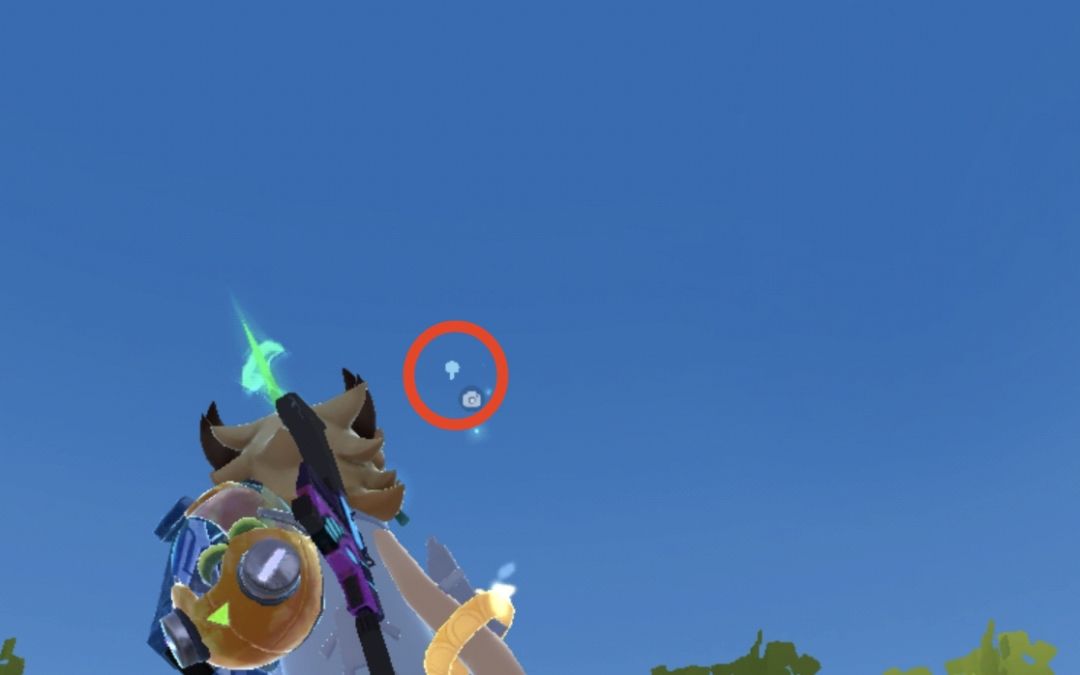3、搜完彩虹神庙后(记得带至少2桶彩虹能源 子弹少一些没关系) 直接开上滑板 你会发现要不了多久(第1个圈小地图蓝条走到1/3左右时)就会出现第一班空投飞机了