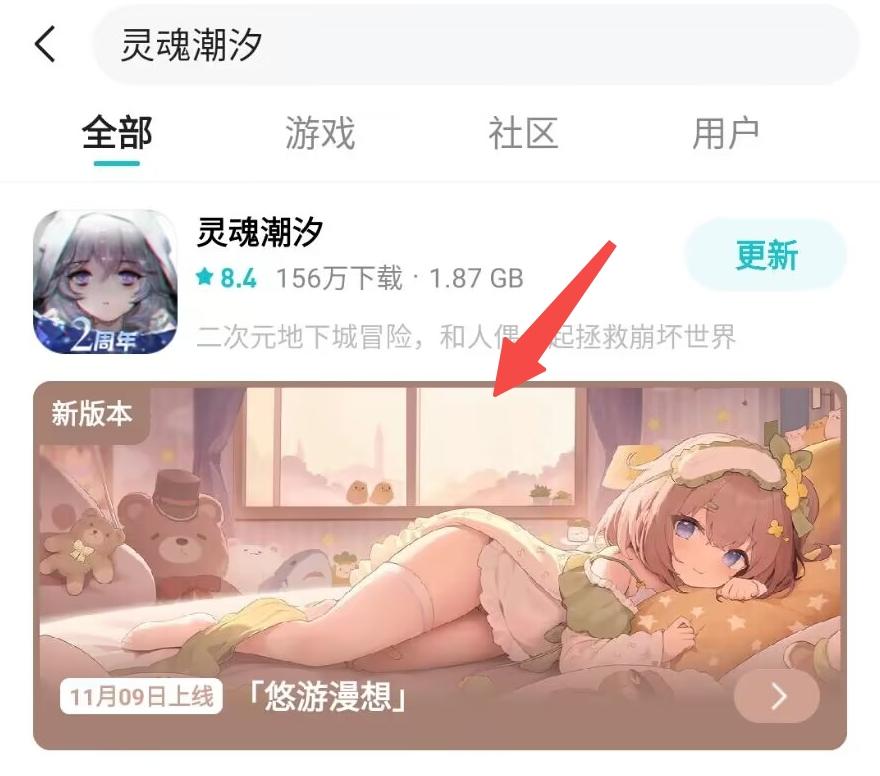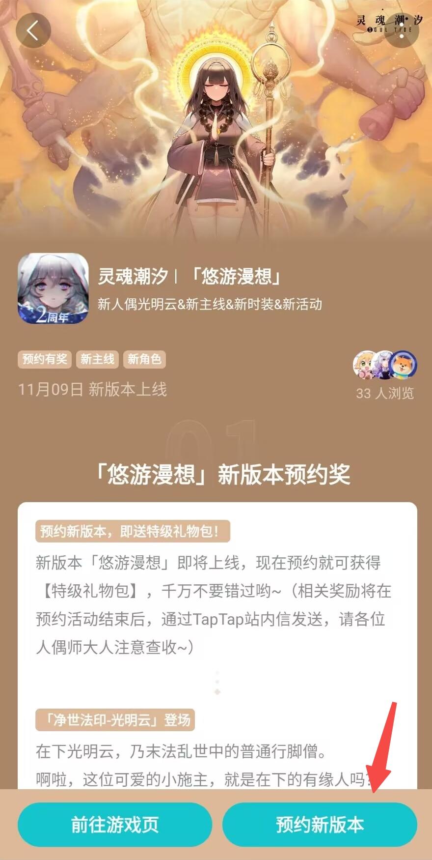 人偶师也可以在个人界面中,点击“我的游戏”,找到《灵魂潮汐》游戏,点击新版本弹窗,即可进入“预约新版本”界面。