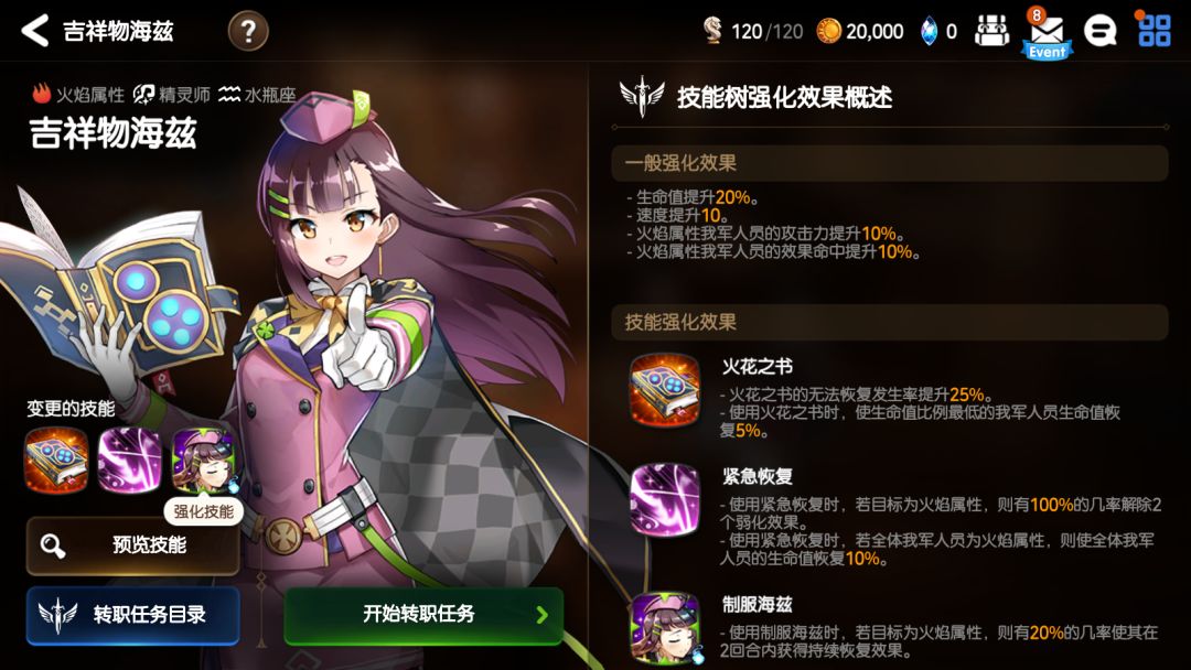 3星火焰属性精灵师“吉祥物海兹”是3星精灵师“海兹”的转职英雄。