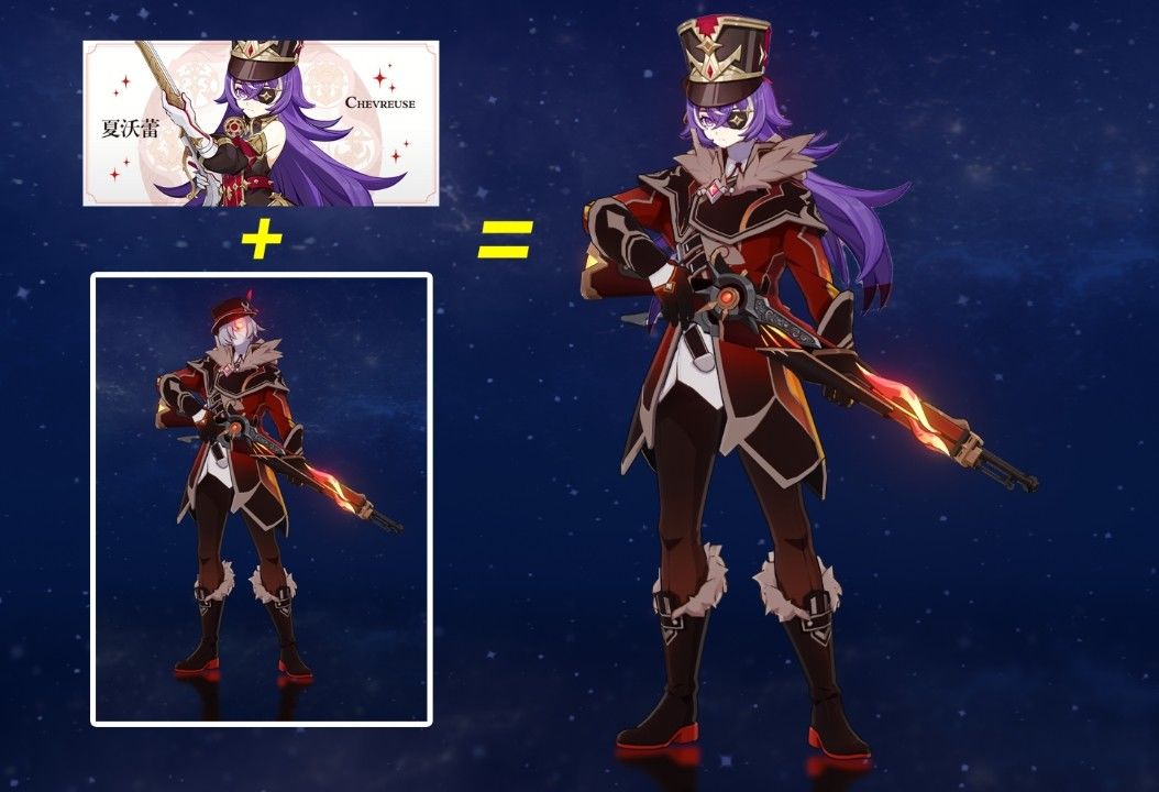 火元素,武器未知,少女体型(估测),特巡队队长——夏沃蕾。命之座名为“剑铳座”,是否代表武器属于单手剑或双手剑呢?不好说,米哈游是自由的~