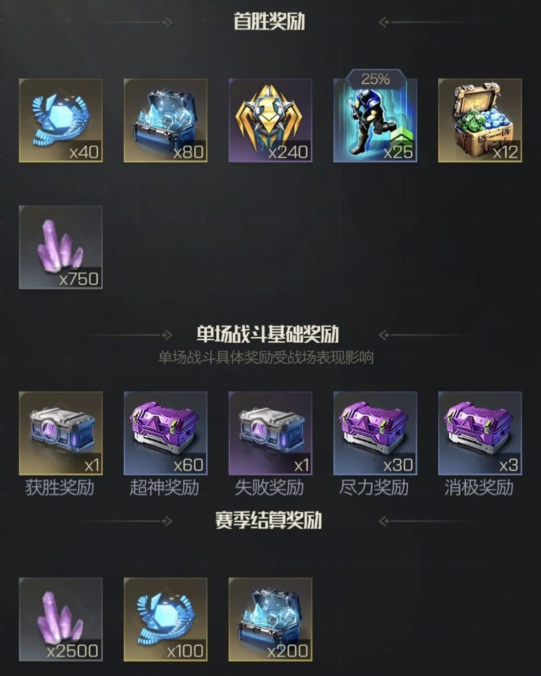 光环赛季大幅提升了战斗奖励,战斗奖励分为首胜奖励,单场战斗基础奖励和赛季结算奖励且每场战斗都有丰厚的奖励可领取。