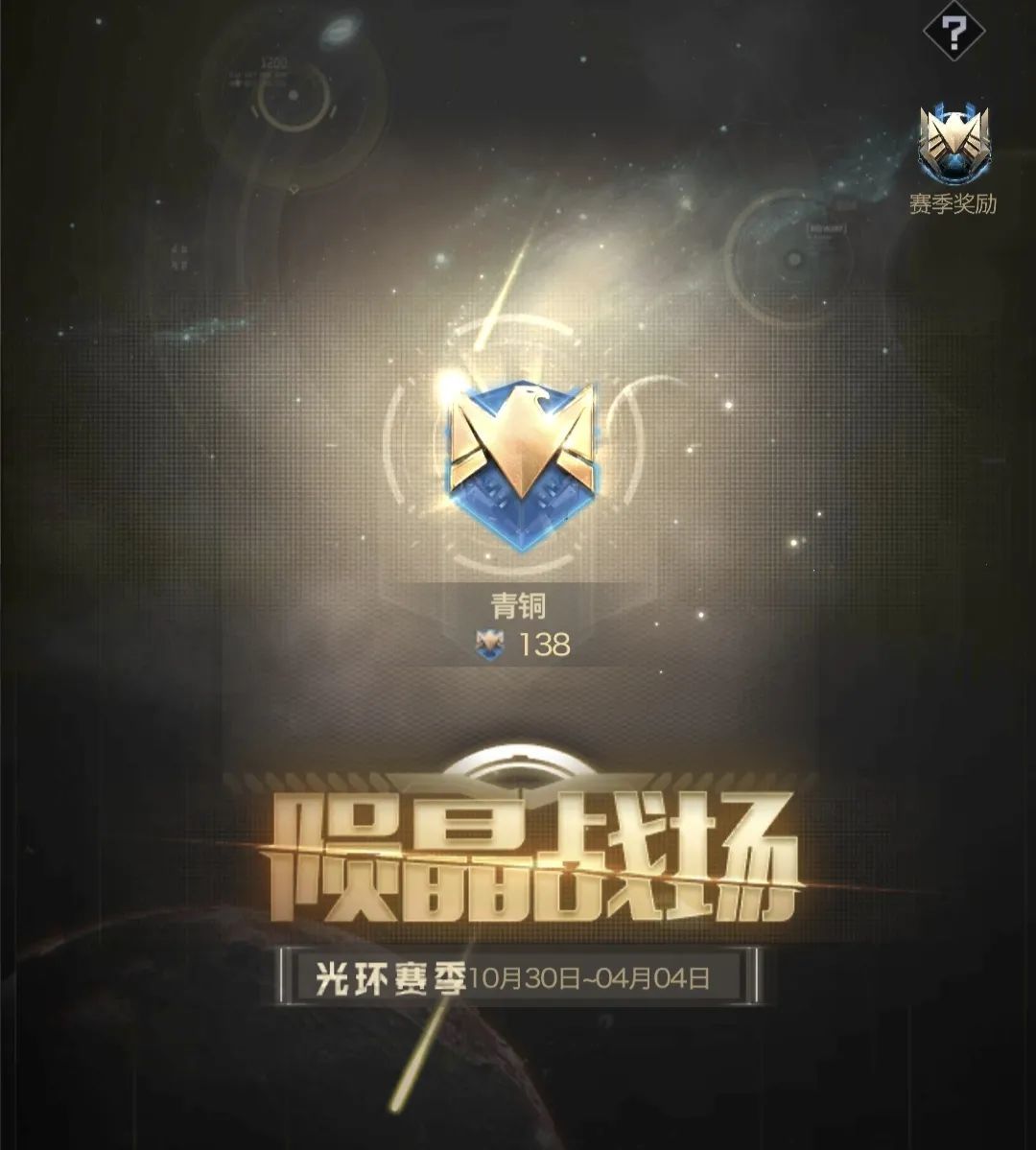 陨晶光环赛季竞技赛于2023年10月30日赛季开始,2024年4月1日结束,共十二期。所有指挥官初始段位分为将根据上赛季结束时的段位分进行转换计算,重新生成初始段位分和段位。