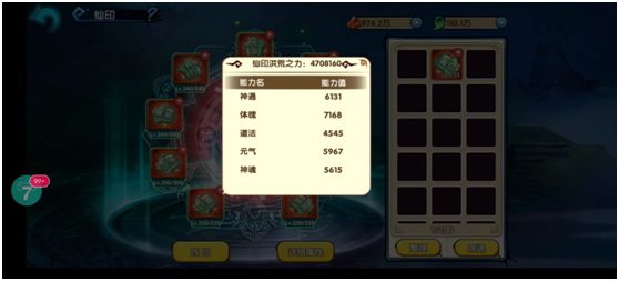 我们可以看到仙印主要提升属性神通,体魄、道法、元气、神魂