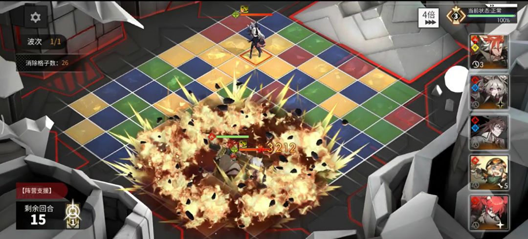 (2)支援阵营:上阵不少于3个红油扳手光灵时,一次性消除15格或30格会触发一次全图伤害,会有(一点也不)炫酷的全屏爆炸效果。