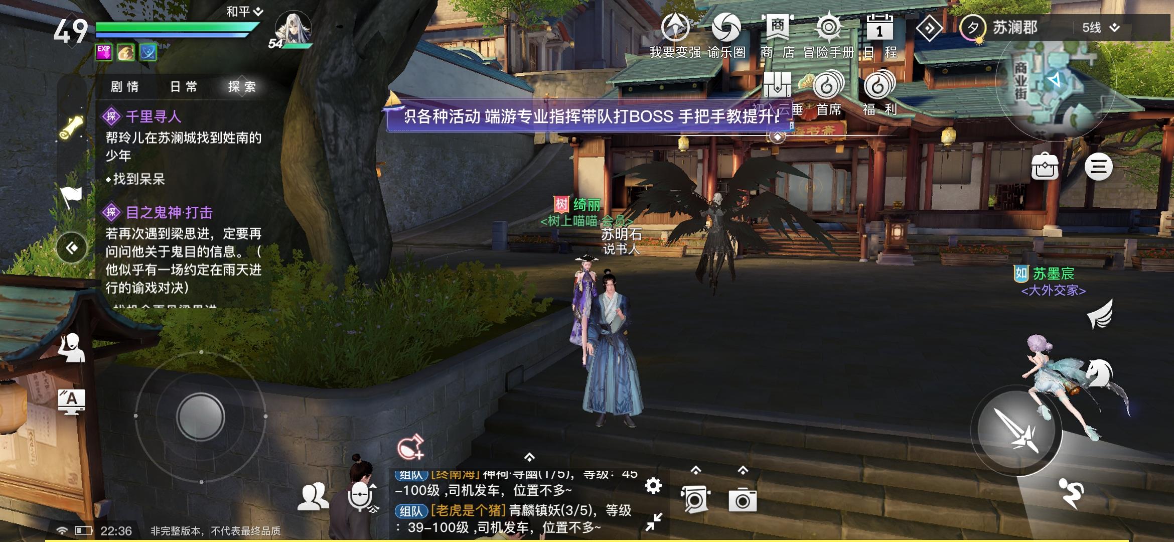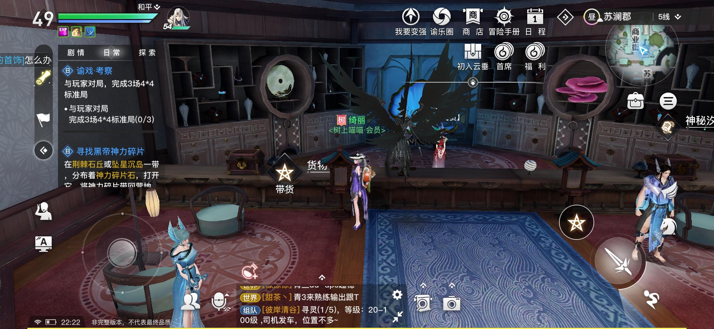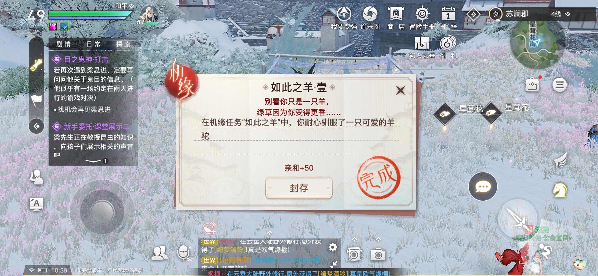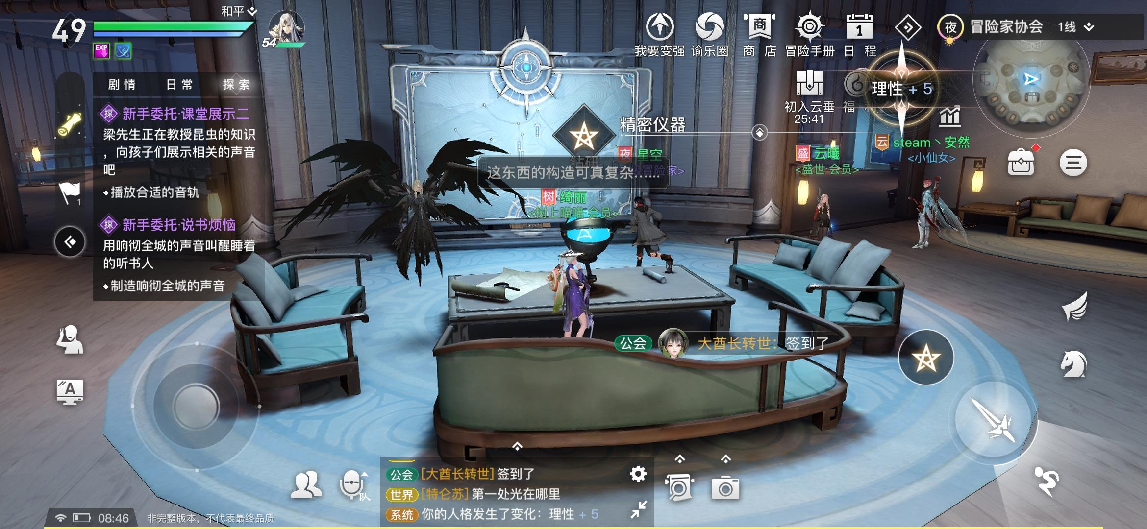 今天做新手探索任务制作响彻全城的声音叫醒睡着的听书人,做了半个小时,最后找到的是说书人不是听书人而且并没有睡着,播放钟声任务就完成,希望公测能把这个任务说明改下。还有要吐槽一下园游会,很容易遇到重复的关卡,希望公测的时候没有重复的关卡。我发现图片的3个地方每天都可以点三下增加不同人格属性,今天我还触发机缘任务了,感觉这个设定还是比较有意思的。
