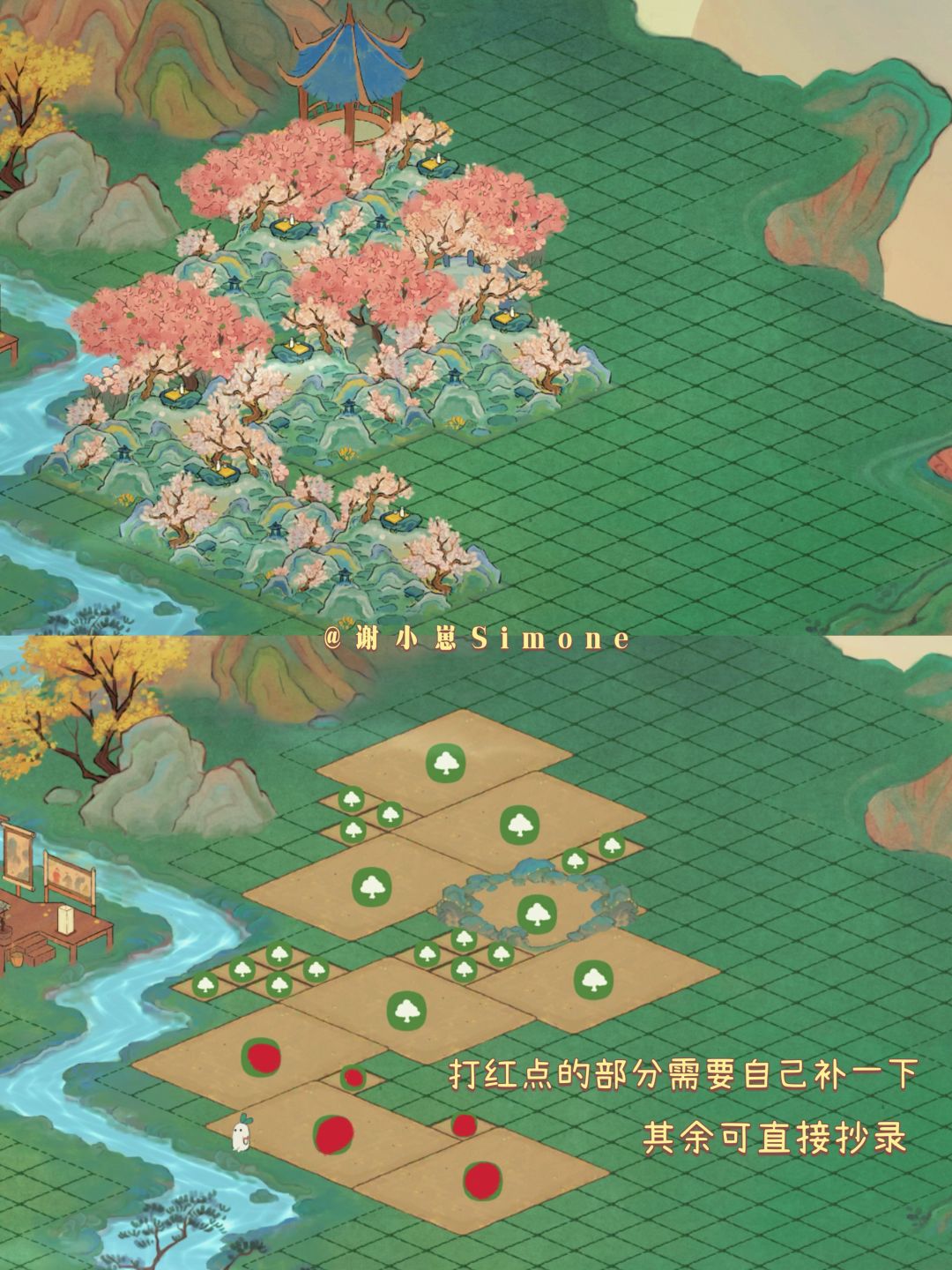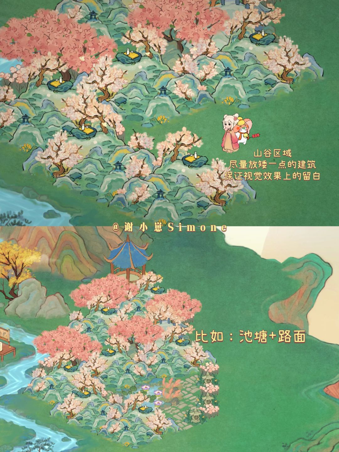 「花樱伴酒」叠起来,形成错落有致的山脉,再搭配「牡丹亭」,和同色系的「樱枝屿」,就很有古画的味道了。po了一张工笔画的效果图,还挺和谐哒哈哈~