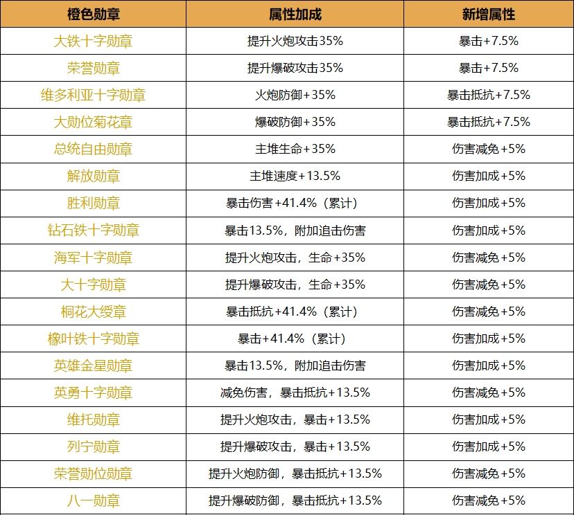 红色勋章:由橙色勋章进阶突破获得,在原有属性的基础上激活1条新属性。