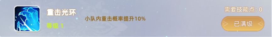 重击光环:小队内重击概率提升10%。