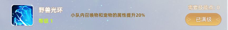 野兽光环:小队内召唤物和宠物的属性提升20%