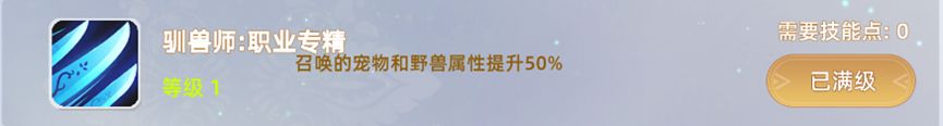 驯兽师 职业专精:召唤的宠物和野兽属性提升50%