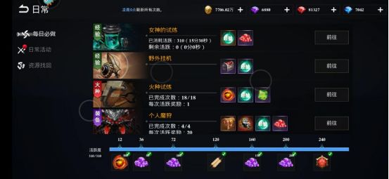 10. 升级。每天优先做完各种任务,各种boss,各种活动后,开启经验石头,一次性打完上古遗迹和女神的试炼。