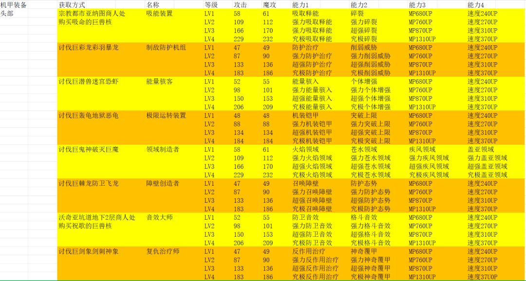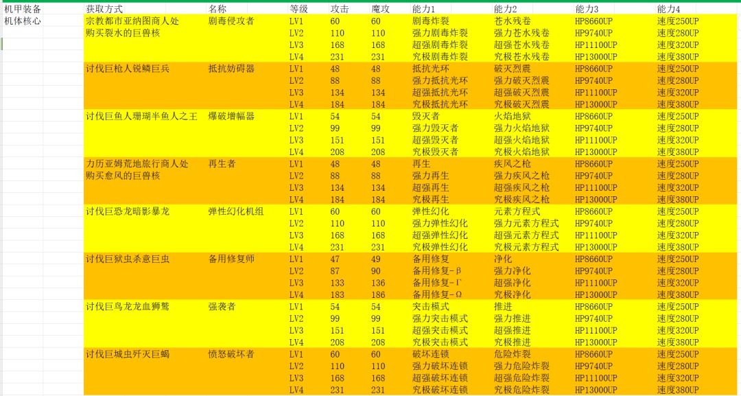 机甲装备(共22件):需要将巨大兽的巨兽核拿到不夜城 科米亚工坊。