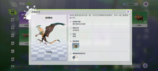 当我们需要抓捕生物为坐骑时,我们需要先锁定该生物,通过观察的方式解锁该生物的图鉴,解锁图鉴之后我们就可以看到它的基本信息,如下图。图鉴中显示为紫色的为精英坐骑,绿色则为普通坐骑。