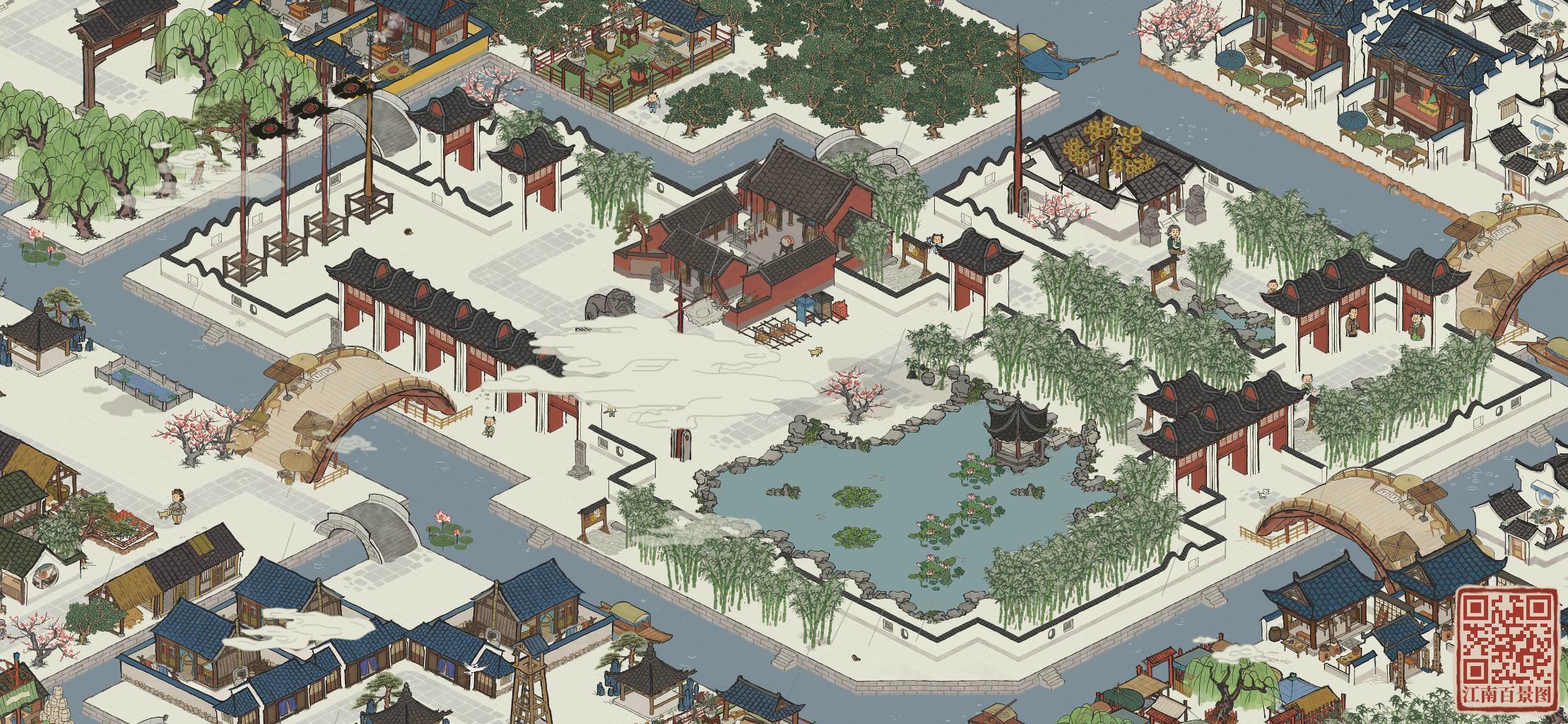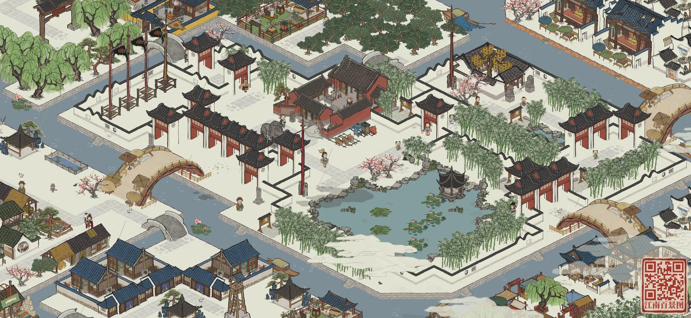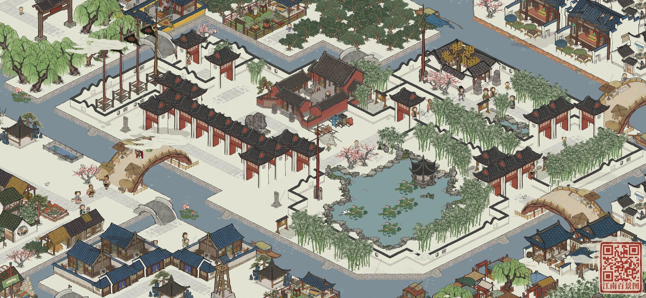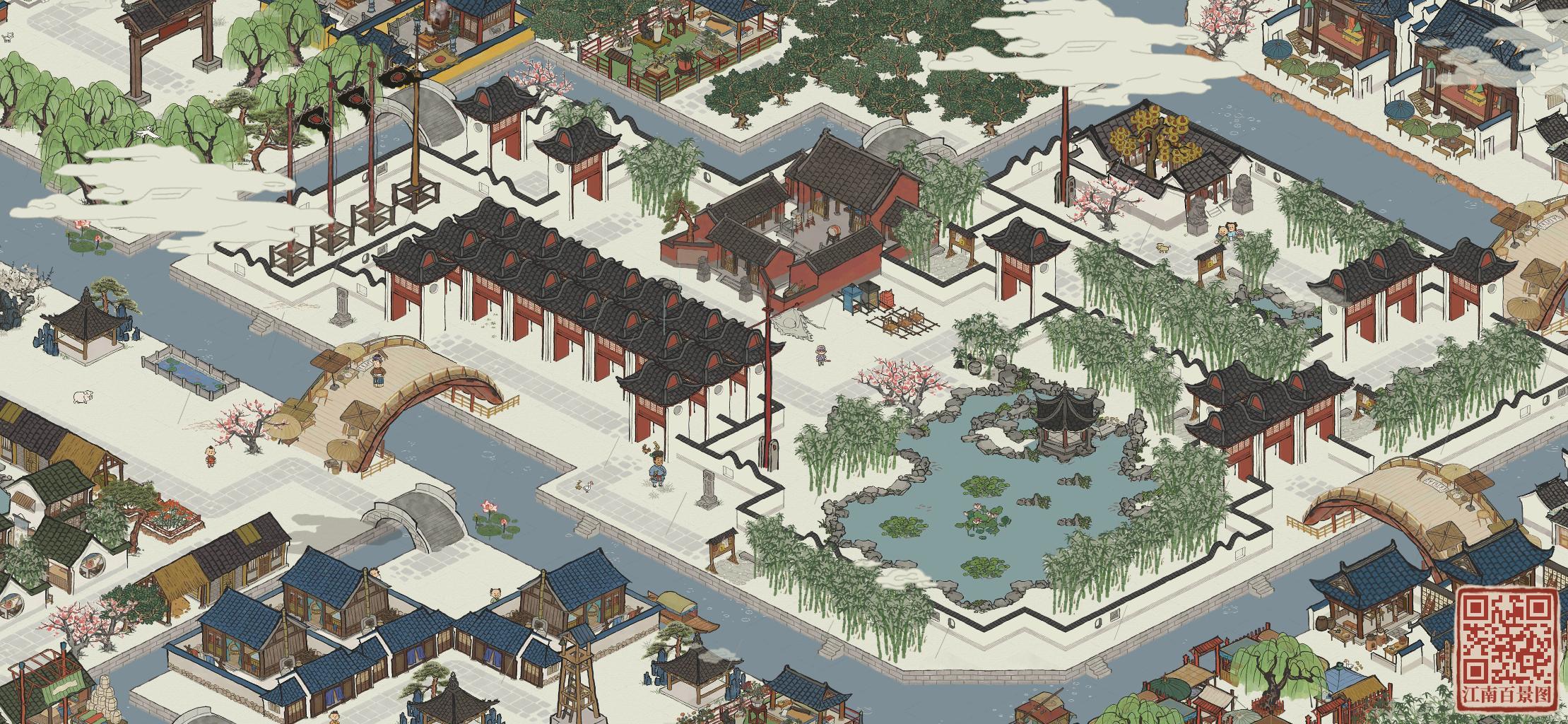 2、整座知府大宅搬至织女雕像,原有的织布和制衣坊搬走,形成一个含园林桥的跨河院落,我考察了一下地形,应该是很适合往大园林方向打造的,难度比第一个高,等破46级后考虑。