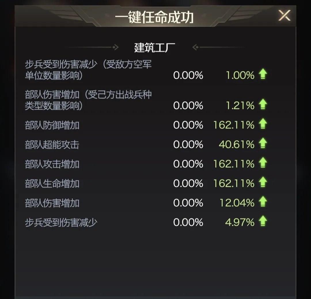 说到这里,小编当时花了4000金条招募到的丹妮丝(哭),但是盟里的欧皇却直接一发入魂,招募到10个丹妮丝碎片(羡慕)!与丹妮丝同步上线的,还有全新升级的战备参谋部,委任任意英雄至战备参谋部,将根据所委任英雄的参谋值总和及军事值总和提升部队出征或驻防时的攻击,防御,生命属性,委任在战备参谋部的英雄的参谋值总和达到目标值,可解锁参谋技,参谋技可有效提升指挥官的战斗能力,参谋技目前具体有军威、奇袭、强击、壁垒、战备。