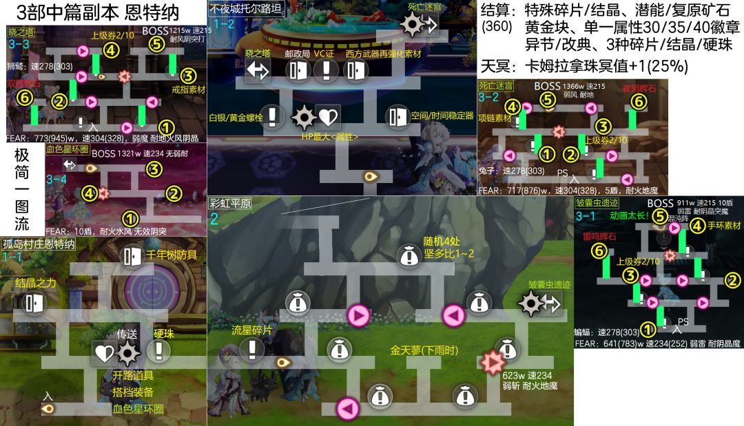 ④打完BOSS后结算:单一属性30/35/40徽章,潜能/复原矿石,黄金块,3种碎片/结晶/硬珠,特殊碎片/结晶,异节/改典,卡姆拉拿珠冥值25%↑。※无特殊矿石