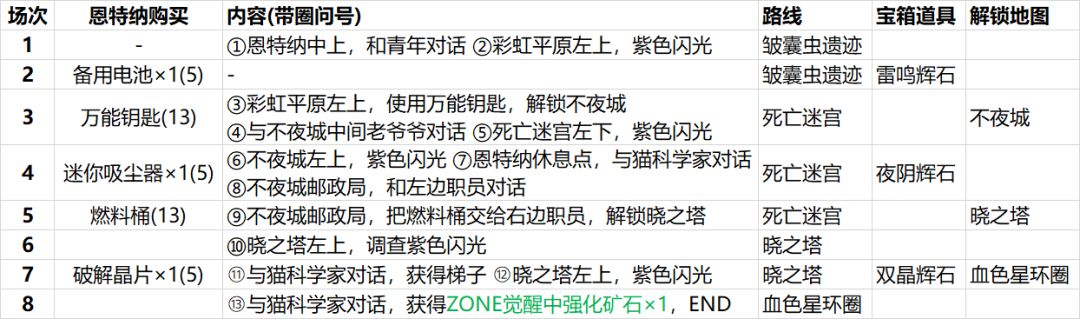 ②彩虹平原捡流星碎片/坚多比/金天蓼。流星碎片用于启动PS(Phase Shift 相位转换),坚多比/金天蓼用于在恩特纳/不夜城兑换道具