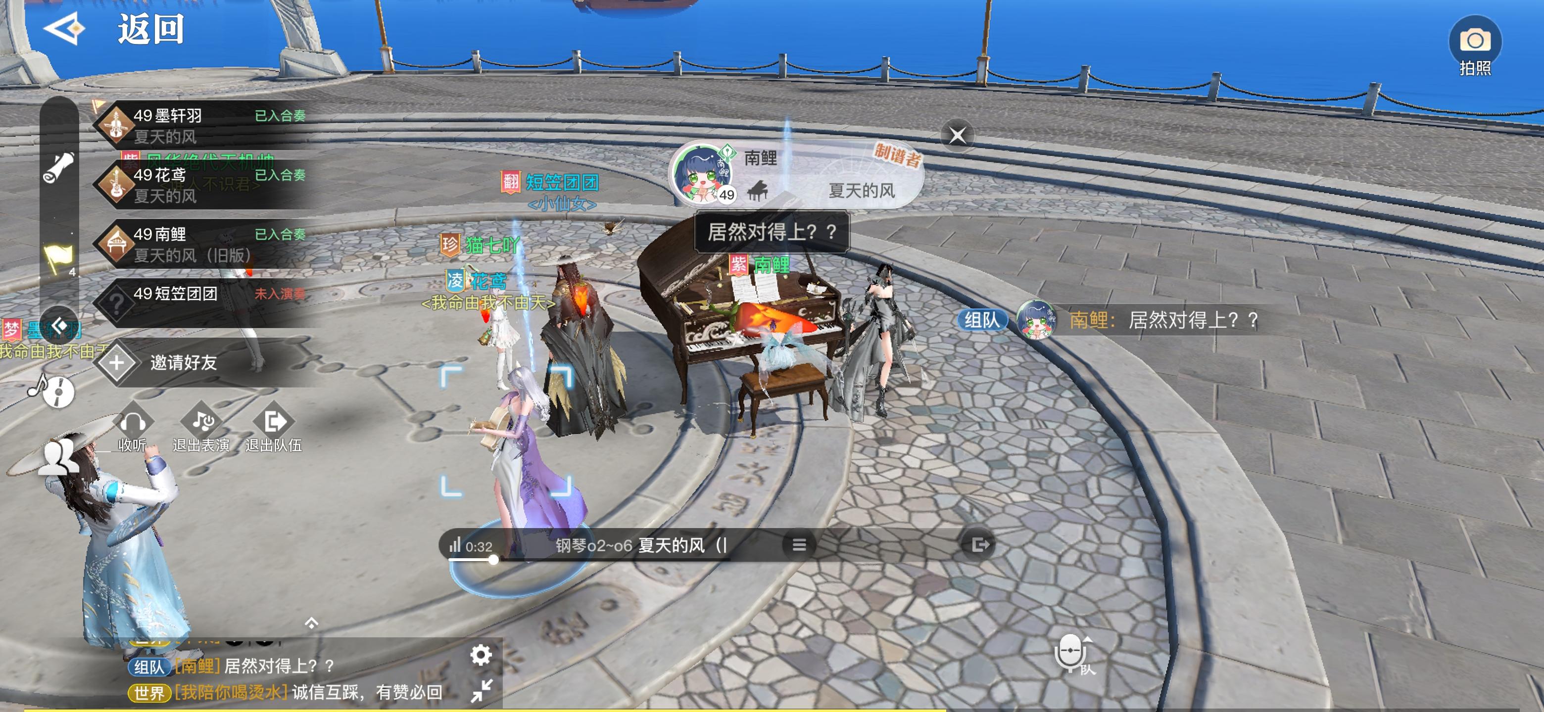 day4 今天除了写谱子,什么也没干,一直在修谱子,今天晚上和路人用不同的谱子居然也合奏对得上,真是太神奇了!下午和乐师团的大家合奏了新宝岛,超好听!!!东云永远滴神!然后听零宝弹了不少好听的曲子!我就是底层乐师呜呜呜 祝大家七夕快乐!顺便用小号体验了一下舞者,也很好玩,不过限制大了点