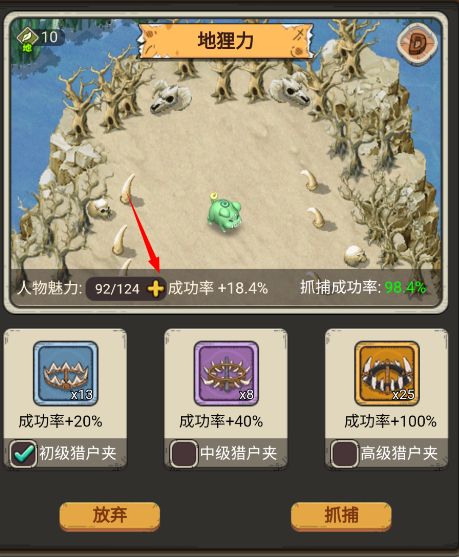当我们遇到用初级夹子抓取的宠物时,如果怕抓脱手,在补充魅力后可以换中级夹子抓,高一级的夹子也会提高我们的成功率。