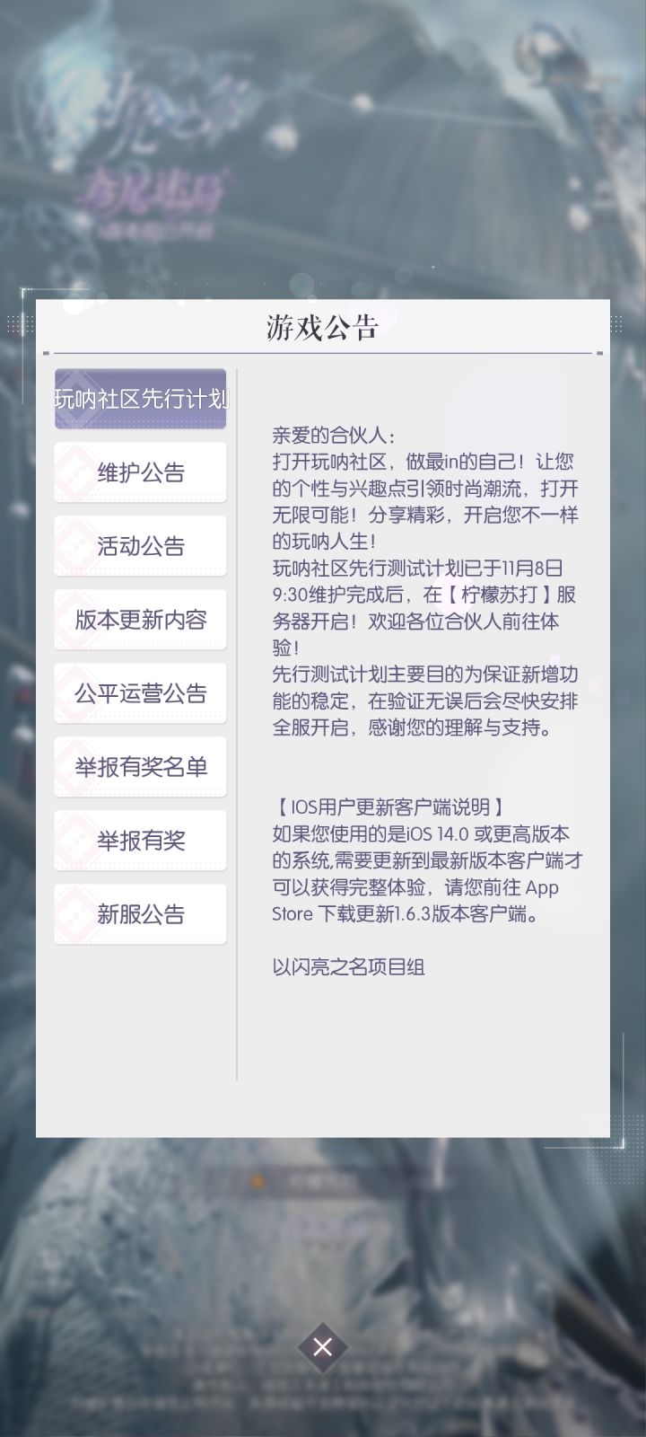 ②玩呐社区先行测试计划已于11月8日9:30维护完成后,在【柠檬苏打】服务器开启!
