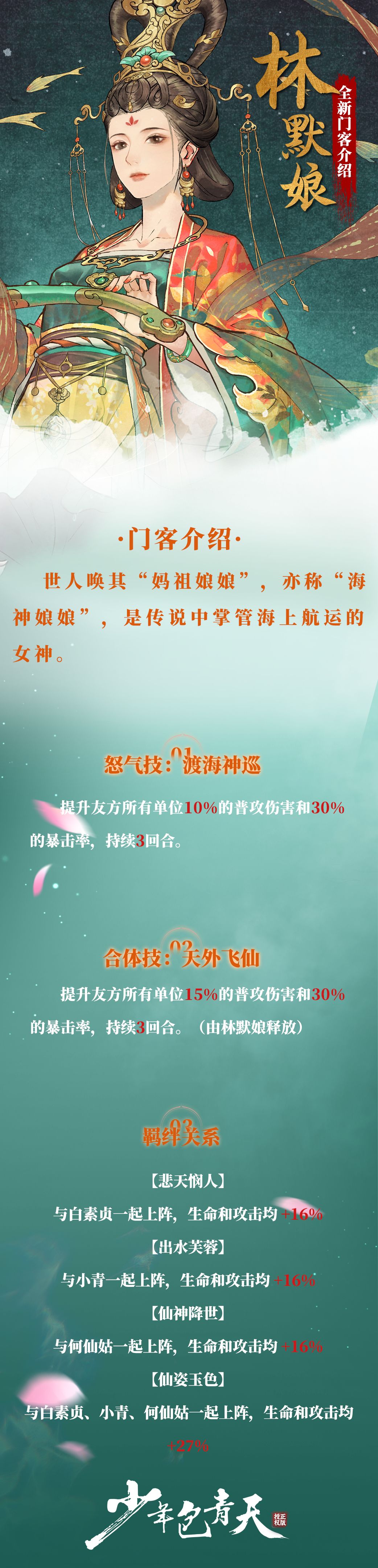 门客介绍 | 全新门客「林默娘」即将上线!风雨海上护众生,灵岛传奇千年恩。——《少年包青天》游戏