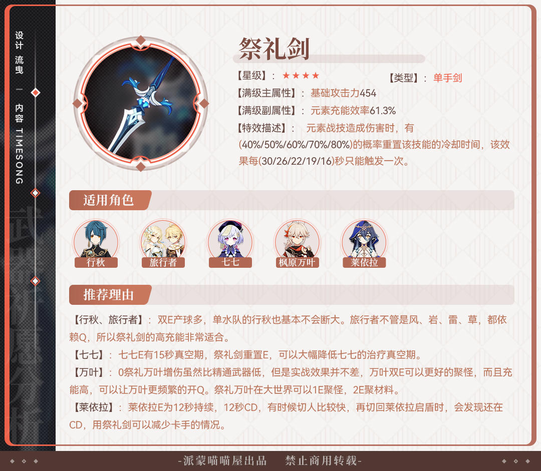 静水流涌之辉这把武器数值特效都非常的优先,但是现在单手剑角色中除了芙宁娜没有适合的角色,芙宁娜使用流涌对比绿剑差距不大,泛用性低,加上这池子非常毒,所以不建议低命芙宁娜去抽这把武器。