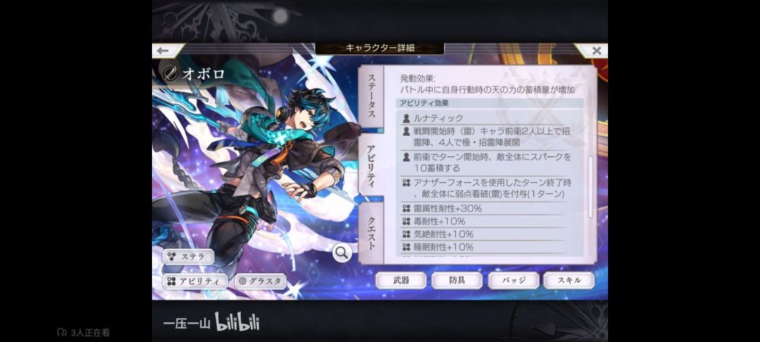 比较可惜的是,胧过于自私,弱点增伤仅提供给自己(实际雷队队伍中所有人都能吃到弱点增伤加成)。刀武器伤虽然是全体,但是雷队没有其他合适的队友是刀武器种,即使转属也找不到好的刀武器种队友(雷刀虽然是刀武器种,但一般不是最优选择)