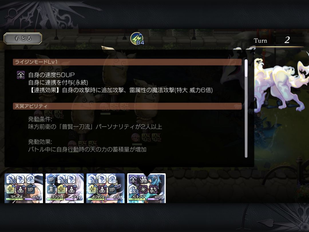 战斗中自身行动积蓄的【天之力】增加(小1级/中2级)