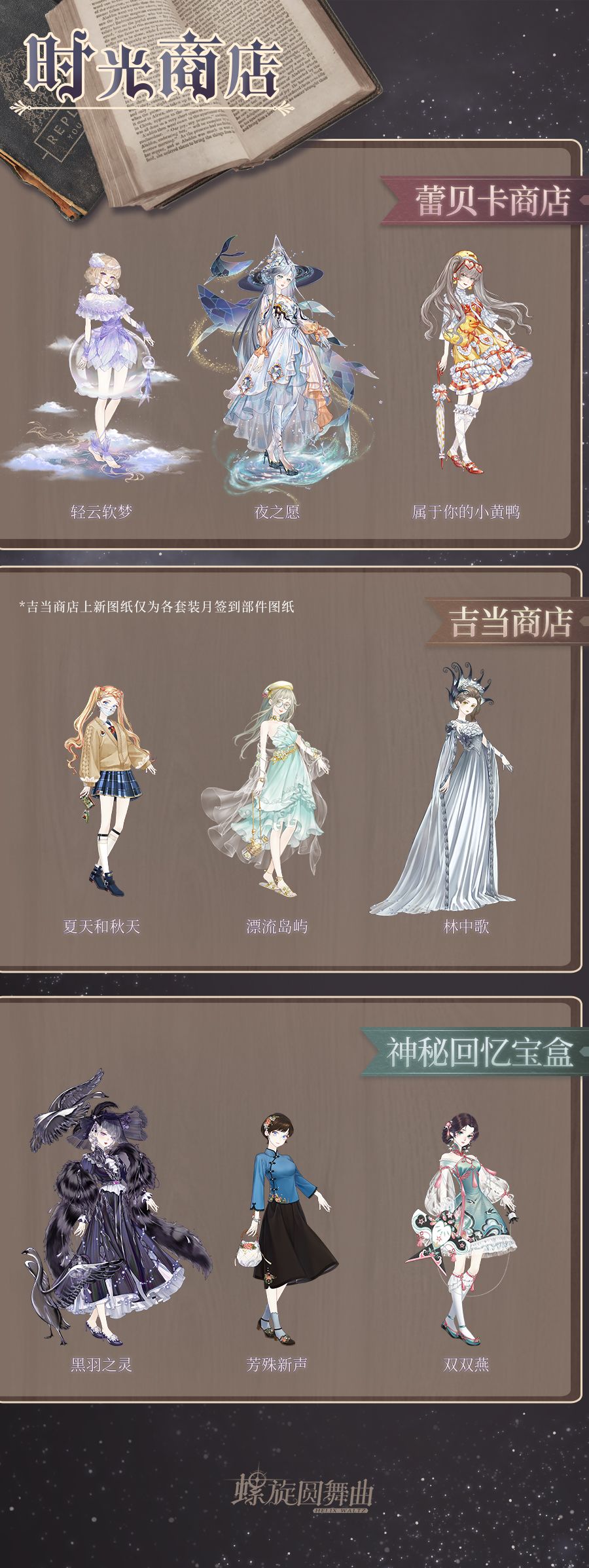 【蕾贝卡商店】进货单:「轻云软梦」套装部件图纸、「夜之愿」套装部件图纸、「属于你的小黄鸭」套装部件图纸